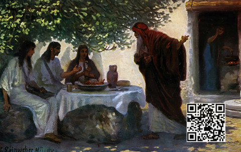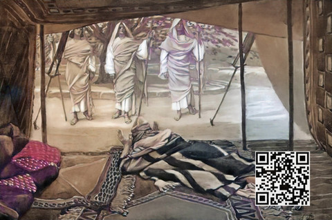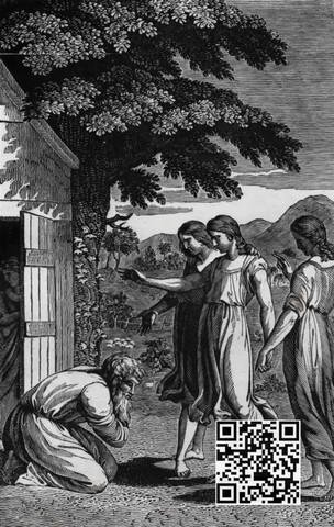 And the Lord appeared to him by the oaks of Mamre, as he sat at the door of his tent in the heat of the day. 2 He lifted up his eyes and looked, and behold, three men were standing in front of him. When he saw them, he ran from the tent door to meet them and bowed himself to the earth